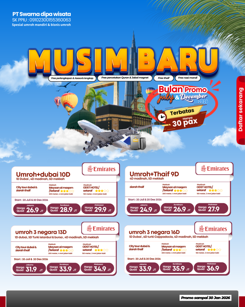 Dengan paket dari Mitra Syar Nabawi harga bersahabat dan pastinya umrohmu bakalan aman dan menyenangkan